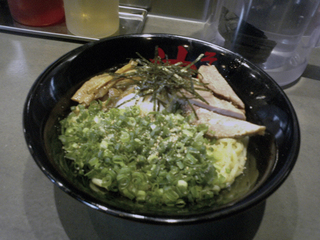 ランチの時間帯のサービスメニューで半熟たまごのせでしたが、きざみねぎを山ほどのせると、しゃきしゃきとした感じでかなりよいでした。
